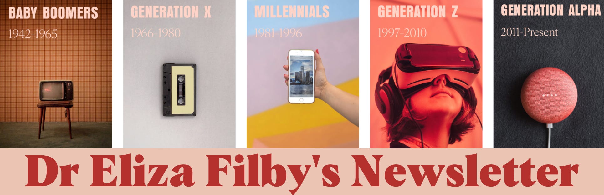 I'm Dr Eliza Filby, a historian of generations who explores how society is changing through the prism of age. In this fortnightly newsletter to you will find articles written by me as well as insights, links and news on generational shifts in the workplace, consumption and society at large. Helping you feel out of touch and up-to-date in equal measure!